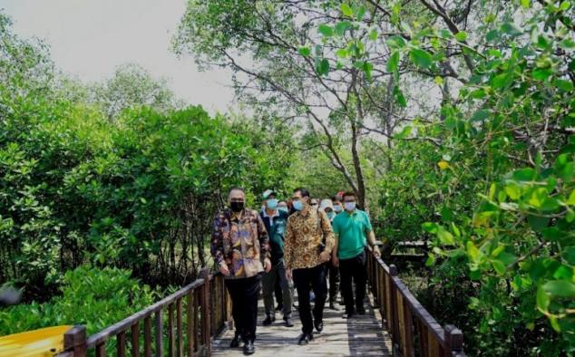 Bersama jajaran Dinas Ketahanan Pangan dan Pertanian (DKPP) Kota Surabaya, mereka menyusuri jogging track yang menerobos ke dalam pohon mangrove. Meskipun cuacanya agak panas, namun semilir angin sejuk membuat pengunjung betah berada di area mangrove itu.