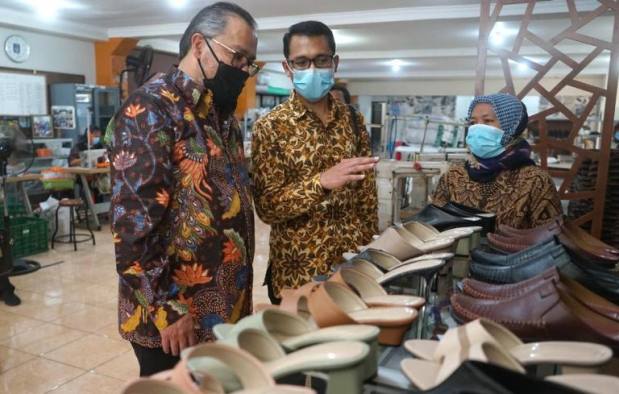 Di tempat itu, mereka melihat warga eks lokalisasi Dolly sedang memproduksi sepatu dan sandal, termasuk sandal hotel yang sudah bekerjasama dengan UMKM tersebut.