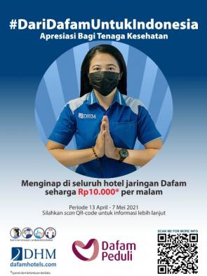 Karena itu, melalui program #DariDafamUntukIndonesia, DHM memberikan dukungan dan apresiasi kepada garda terdepan penanganan Covid-19 tersebut dengan beragam layanan terbaik dan kenyamanan.