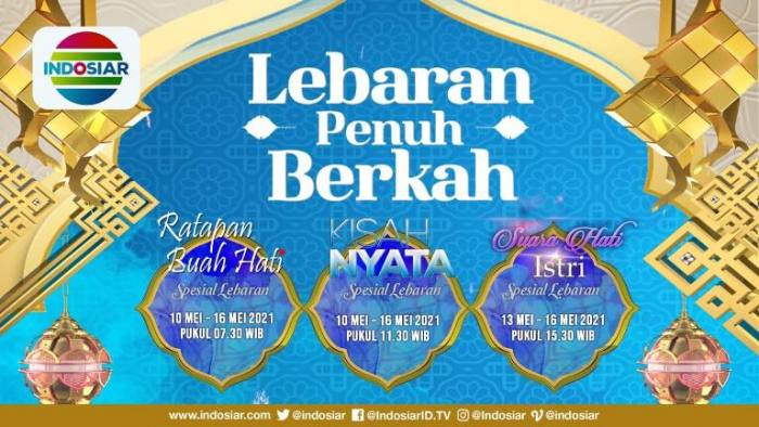 Tak perlu galau dan sedih. Indosiar sudah menyiapkan sederet program yang dikemas dalam paket ‘Lebaran Penuh Berkah’ agar suasana Lebaran tetap menyenangkan meski hanya di rumah saja.