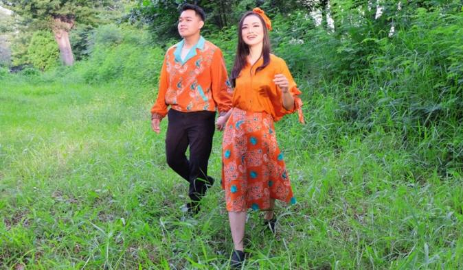 Embran memilih batik Surabaya dengan motif daun semanggi. Simbol Suroboyo ini terlihat sangat fashionable dengan warna orange dan hijau segar.