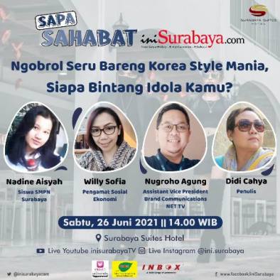 Acara hasil kolaborasi inisurabaya.com dan Surabaya Suites Hotel yang bakal dipandu Angelia Merry, GM Bisnis iniSurabaya.com ini juga bisa dinikmati secara streaming di akun Instagram @ini.surabaya serta kanal YouTube @inisurabayaTV. *