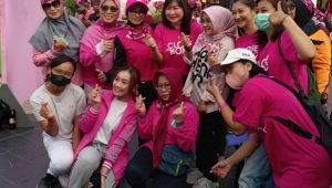Rini Indriyani, Ketua Tim Penggerak PKK Kota Surabaya hadir dan memberi semangat di puncak acara peringatan bulan peduli kanker payudara yang diadakan AHCC di pelataran Balai Pemuda Surabaya.