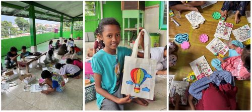 LINERs Berbagi di Sekolah Hebat Pasar Minggu turut diramaikan dengan kegiatan melukis tas yang dipandu oleh seorang fasilitator. Dari total 35 siswa yang ikut berpartisipasi, kemudian dibagi kembali menjadi beberapa grup kecil dan masing-masing grup dibimbing oleh perwakilan LINERs.