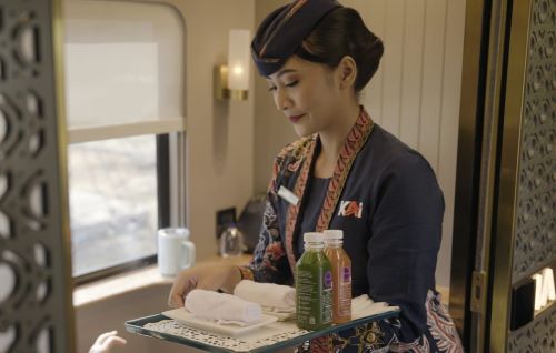 “Ini adalah pengalaman yang mewah. Kita punya kamar-kamar sendiri yang sangat nyaman, kursinya bisa dibuat rebahan maksimal, dan servisnya sangat menyenangkan juga. Pertama kali saat masuk kereta kompartemen ini saya sangat takjub dengan detil-detil yang sangat bagus,” paparnya.