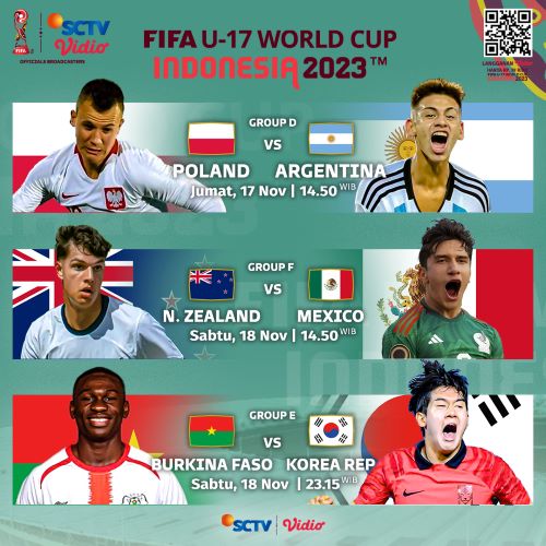 Sementara Timnas Ir Iran U-17 akan tampil habis-habisan menyalip perolehan poin Brazil untuk lolos ke 16 besar. Vidio akan menyiarkan secara Live eksklusif kontra antara Ir Iran vs Kaledonia Baru, Jumat (17/11/2023) pukul 19.00 WIB dari Stadion Si Jalak Harupat.