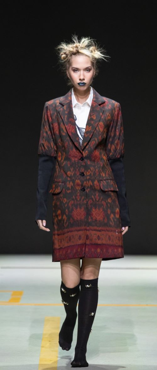 Koleksi busana karya Aldrie Indrayana diperagakan di gelaran hari ke-4 BRICS+ Fashion Summit, Moskow.