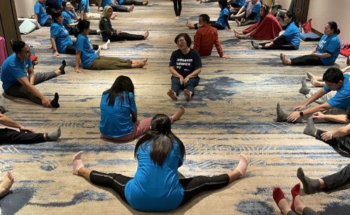 Melalui serangkaian gerakan senam sederhana, peserta diarahkan untuk melakukan teknik TRE, yang membuat otot-otot yang bertanggung jawab atas respons stres tubuh menjadi terkontraksi.