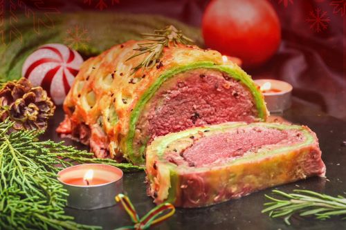 Ada pun pilihannya adalah Christmas Log dan Beef Wellington yang cocok disuguhkan sebagai bingkisan Natal. Christmas Log yang dihidangkan dalam bentuk dekorasi menyerupai kayu bakar ini menjadi salah satu hidangan ikonik dalam perayaan Natal.