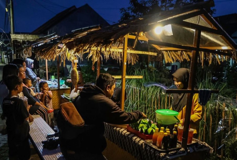 Memasuki kampung dengan panjang sekitar 400 meter itu, mata akan disuguhkan dengan beberapa saung dari sesek dan bambu tempat para UMKM menyajikan kuliner mulai dari wedang, ketan, hingga makanan berat yang dapat dinikmati sembari berkeliling.