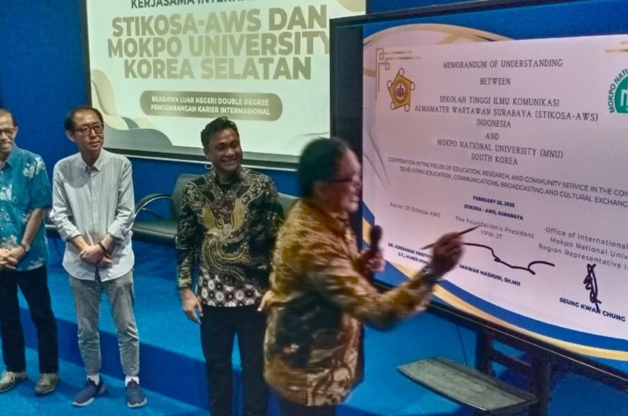 iniSURABAYA.com – Sekolah Tinggi Ilmu Komunikasi Alumni Wartawan Surabaya (Stikosa AWS) menjajagi peluang baru dengan menjalin kerjasama dengan Mokpo National University (MNU) Korea Selatan.