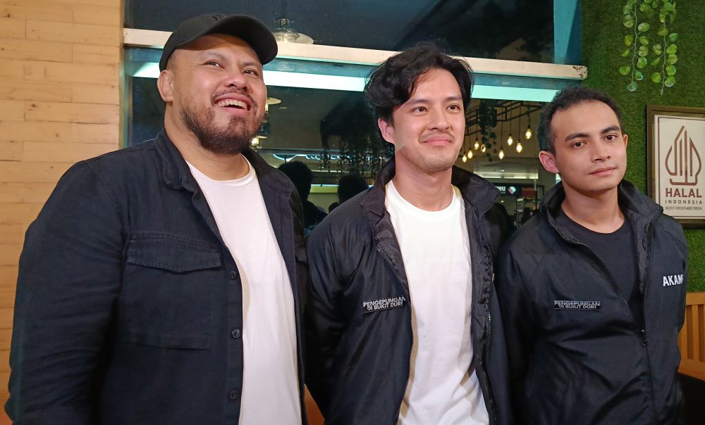Joko Anwar (kanan) didampingi Morgan Oey dan Omara Esteghlal saat diskusi dengan penonton di Stuio XXI Royal Plaza Surabaya.
