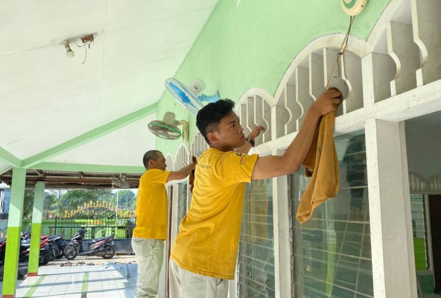 Dengan penuh semangat kebersamaan membawa peralatan kebersihan yang sudah disediakan dari hotel, para karyawan bersama-sama membersihkan area dalam dan luar masjid. Setiap sudut masjid dan mushola disentuh dengan penuh kepedulian yang menciptakan lingkungan bersih dan asri, memberi kenyaman bagi jamaah yang akan beribadah nantinya.