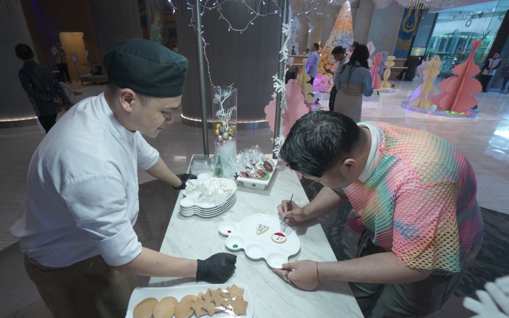 Salah satu keseruan di momen liburan akhir tahun kali ini adalah tamu diajak bikin hiasan cookies untuk Natal. (foto-foto: dok Vasa Hotel Surabaya)