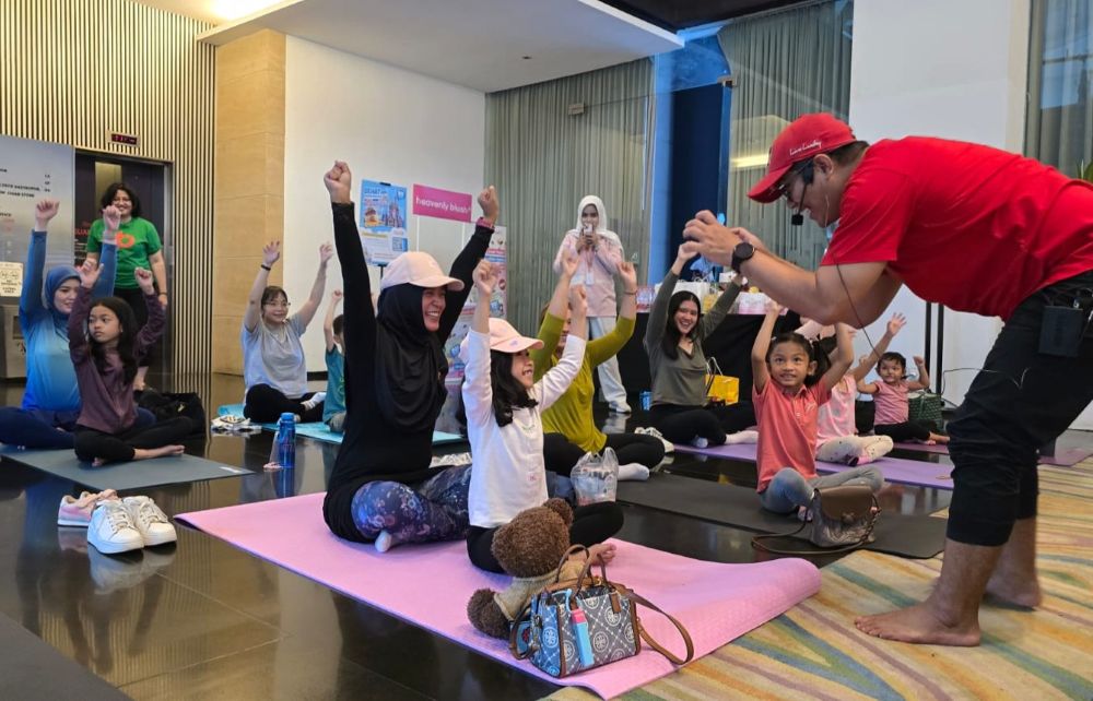 Acara yang diikuti 22 peserta ibu dan anak itu berlangsung di Artspace lantai UG. Dipandu oleh Coach Diex Poer, sesi yoga berlangsung dalam atmosfer hangat dan menyenangkan.