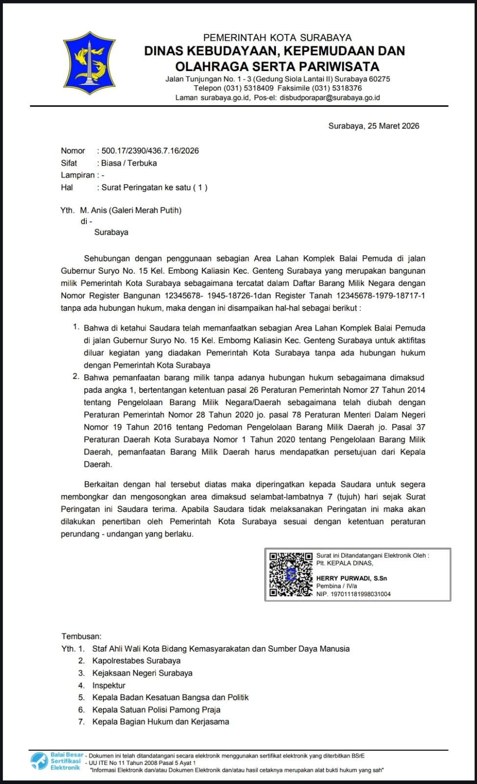 Bahkan sebelum itu, pada tahun 1968, Akademi Seni Rupa Surabaya (Aksera) telah menjadikan ruang di Balai Pemuda sebagai tempat berkegiatan, sebagai lembaga pendidikan seni rupa bergaya sanggar yang melahirkan banyak pelaku seni ternama.