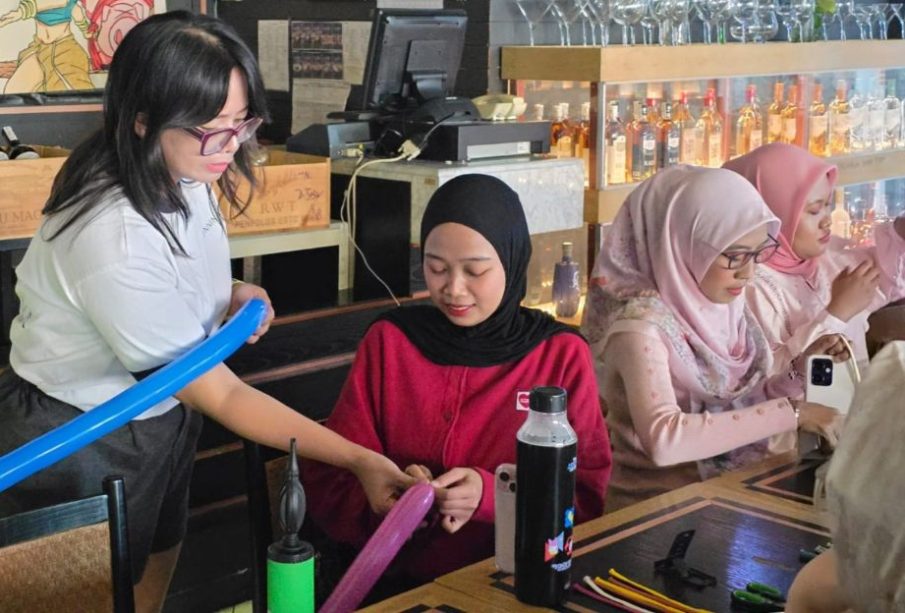 Para peserta diajak mempelajari teknik dasar hingga merangkai balon menjadi bentuk bunga yang estetis. Dengan arahan dari Balonnina Surabaya, peserta terlihat antusias mengeksplorasi kreativitas melalui pembuatan buket bunga daisy dari balon.