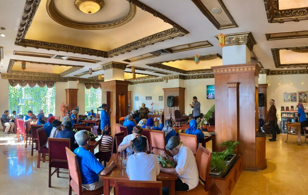 Pungky Kusuma, GM Hotel Quds Royal Surabaya (tengah) menyambut kehadiran para alumnus Stikosa AWS saat rilis buku Antologi Puisi & Esai yang bersamaan dengan launching Festival Pecel Pincuk Suroboyo.